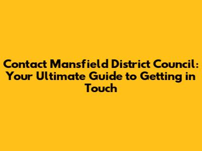 Hey there, folks! If you're looking for information on how to contact Mansfield District Council, you've landed in the right spot. Navigating local government can sometimes feel like a maze, but don't worry, we're here to be your friendly guide. We'll break down everything from phone numbers and addresses to the different services they offer, making it super easy for you to get the help you need. Whether you're dealing with council tax, reporting a problem, or just have a general question, we've got you covered. So, let's dive in and get you connected with Mansfield District Council!