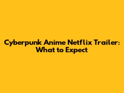 Cyberpunk Anime Netflix Trailer: What To Expect