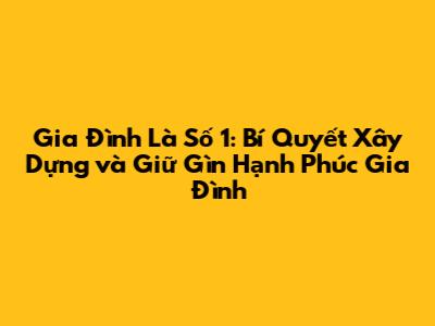 Gia Đình Là Số 1: Bí Quyết Xây Dựng Và Giữ Gìn Hạnh Phúc Gia Đình