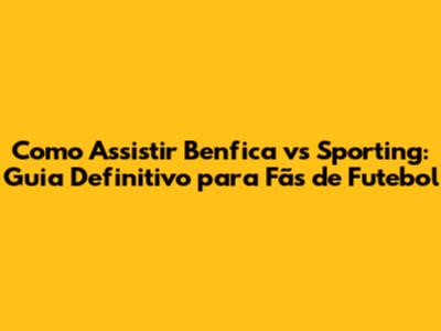 Guia Completo: Como Assistir Benfica Vs Sporting