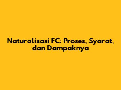 Naturalisasi FC adalah proses di mana seorang pemain sepak bola memperoleh kewarganegaraan dari negara tempat klubnya berada, sehingga memenuhi syarat untuk bermain di liga domestik dan, dalam beberapa kasus, mewakili tim nasional negara tersebut. Proses ini biasanya melibatkan serangkaian persyaratan hukum dan administratif yang ketat. Tujuan utama dari naturalisasi adalah untuk meningkatkan kualitas tim dengan mendatangkan pemain-pemain berbakat yang mungkin tidak tersedia secara lokal. Namun, naturalisasi juga sering kali memicu perdebatan etis dan profesional.